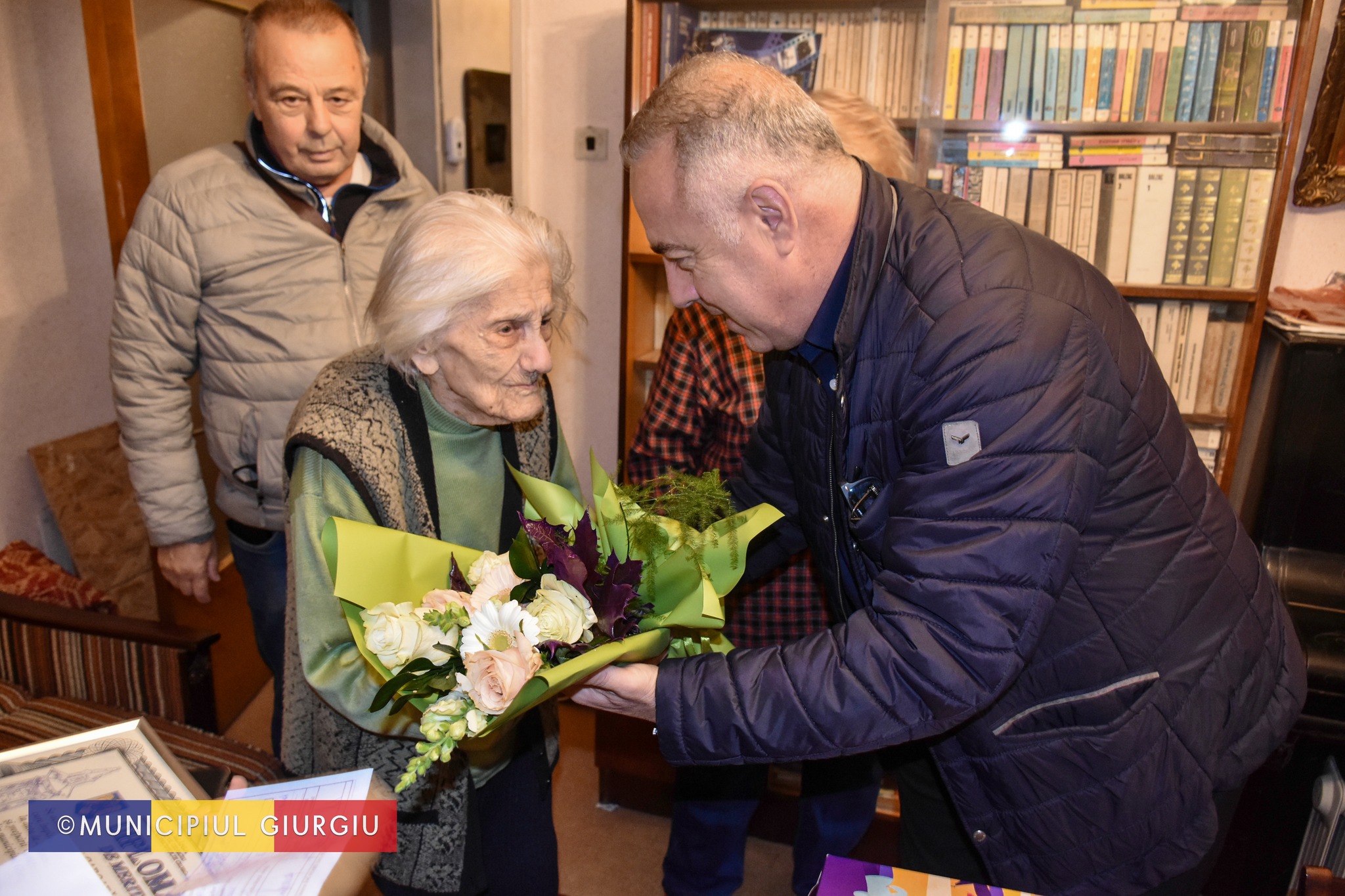 Cu sufletul plin de emoție, comunitatea giurgiuveană a marcat acest eveniment deosebit. Primarul municipiului Giurgiu, Adrian Anghelescu, a vizitat-o pe sărbătorită, oferindu-i un buchet de flori, un tort, o diplomă de recunoștință și suma de 1.000 de lei, ca semn de respect pentru tot ce a dăruit prin viața sa.