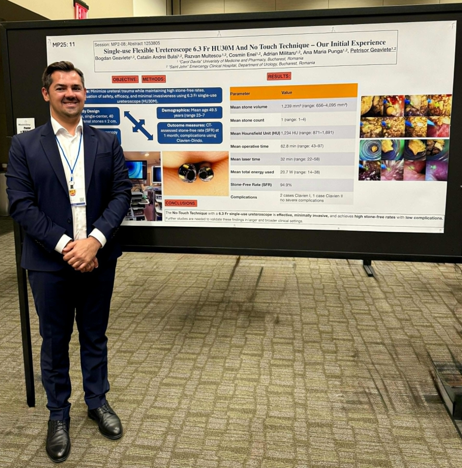 Recent, medicul giurgiuvean a reprezentat România la Congresul Mondial de Endourologie și Tehnologie (WCET 2025), desfășurat la Phoenix, Arizona, unde a avut onoarea de a prezenta două lucrări inovatoare din domeniul urologiei: