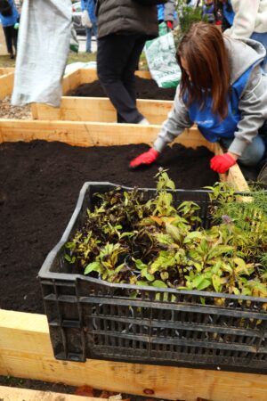 Sub coordonarea arhitectului peisagist Alexandru Gheorghe, fost elev al colegiului, 80 de voluntari – elevi din clasele a V-a B, a VI-a B, a VIII-a B și a XI-a E – au amenajat trei tipuri de grădini: