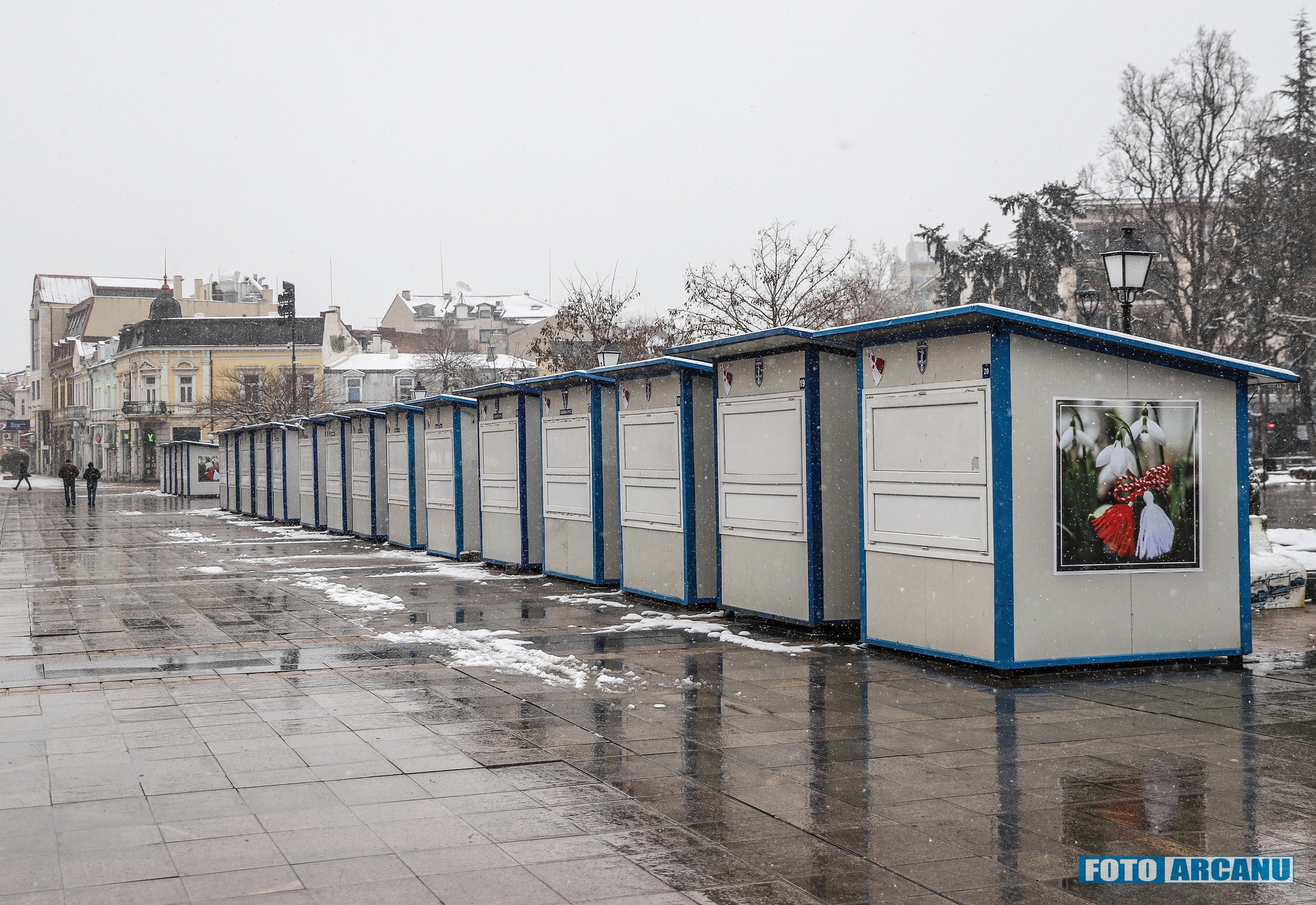 Deși mai sunt câteva zile până la 1 Martie, orașul Ruse, aflat dincolo de Dunăre, începe deja să se pregătească de sărbătoare. Barăcile destinate comercianților de mărțișoare au apărut în peisaj, iar atmosfera prinde contur în așteptarea forfotei care va cuprinde orașul la început de primăvară.