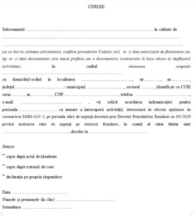 Fișierul complet va conține: cererea semnată+ copie CI + declarația pe propria răspundere semnată.