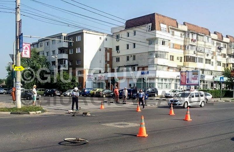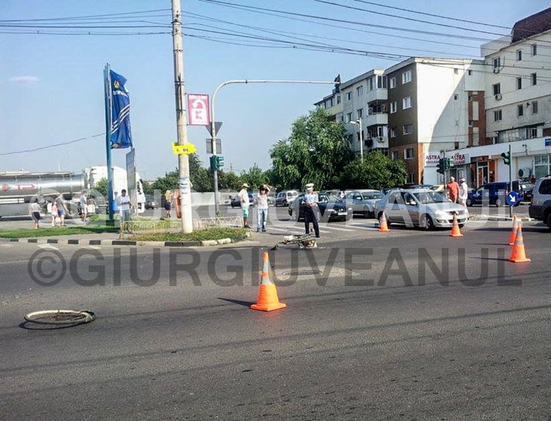 Un biciclist din Giurgiu a căzut cu capul de asfalt, în urmă cu câteva minute, în intersecţia de la PETROM, după ce furca de la bicicletă i s-a rupt.