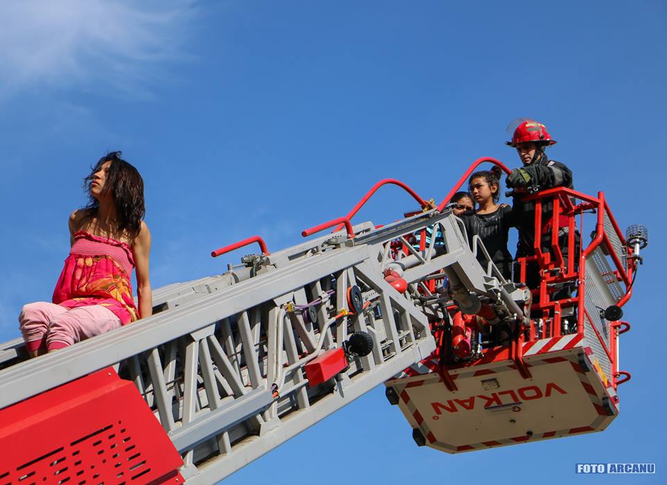 La intervenţie au acţionat şi o autoplatformă de lucru la înălţime şi o ambulanță SMURD.