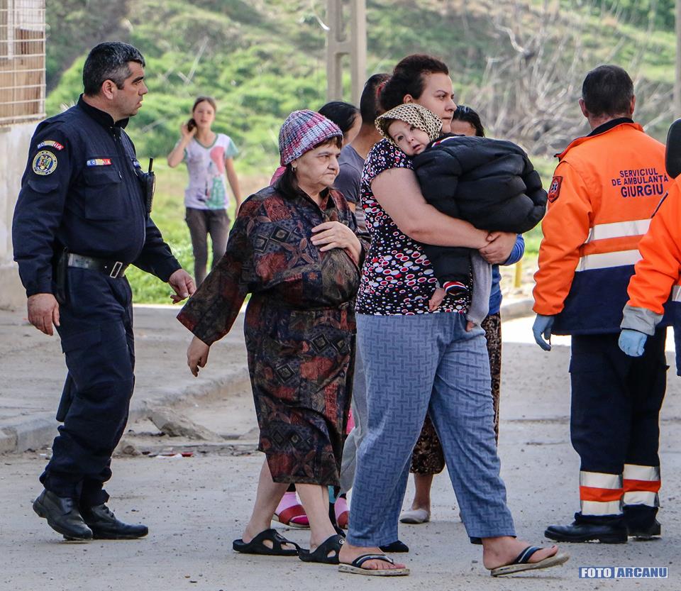 40 de persoane au fost evacuate iar o femeie cu cei doi copii ai săi au fost salvaţi cu autoplatforma. Două autospeciale ale pompierilor, sub comanda adjunctului inspectorului şef al ISU Giurgiu, colonel Marius Stancu,