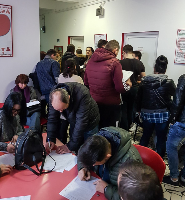 IMG-20180212-WA0000Dragii noştri, în urma apelului la solidaritate pentru tânărul giurgiuvean Ionuţ Adrian Bucur, ce urmează a fi operat în Spitalul “Bgdasar Arseni”, zeci de tineri au venit în această dimineaţă să doneze sânge!