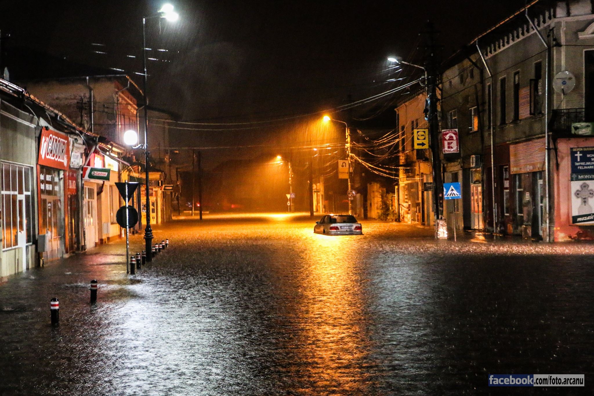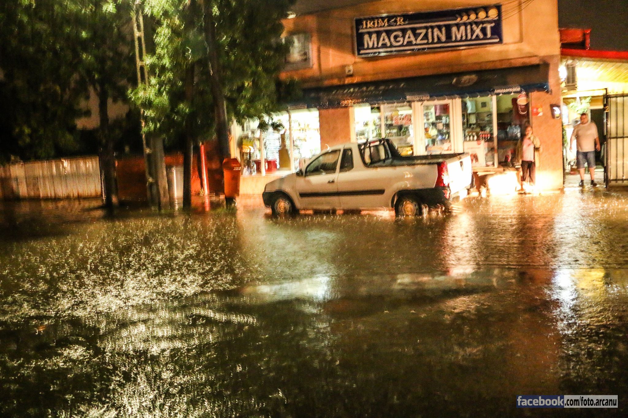 În Giurgiu, ploaia torenţială, care a început în jurul orei 1 noaptea, a fost precedată de descărcări electrice şi intensificări ale vântului. Canalizarea oraşului nu a mai făcut faţă iar mai multe străzi au fost inundate din cauza ploii torenţiale. Până şi subsolul Prefecturii Giurgiu a fost inundat.