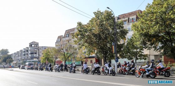 Alături de familie, rude, prieteni, vecini, cunoscuţi… s-au aflat şi peste 150 de colegi motociclişti, care au însoțit cortegiul funerar.