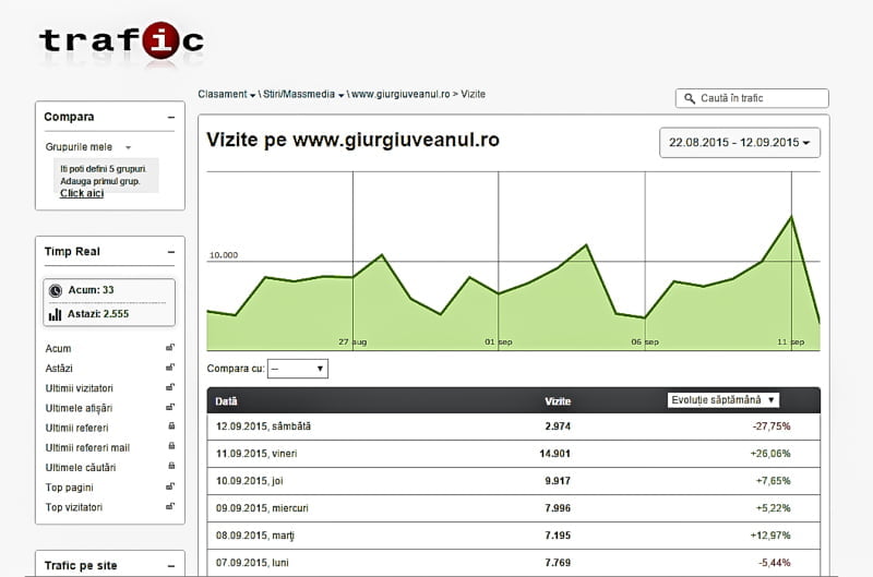 Revenind la subiectul acestui articol, nu vrem decât să vă informăm că www.giurgiuveanul.ro a atins, din nou, vineri, 11 septembrie 2015, un număr record de cititori, respectiv: 11.345 de vizitatori, 14.901 de vizite şi 32.273 de afişări, conform http://www.trafic.ro/statistici/www.giurgiuveanul.ro/.