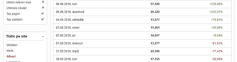 La capitolul AFIŞĂRI, Giurgiuveanul.ro a înregistrat o altă cifră record: 57.480, iar la VIZITE – 24.440!