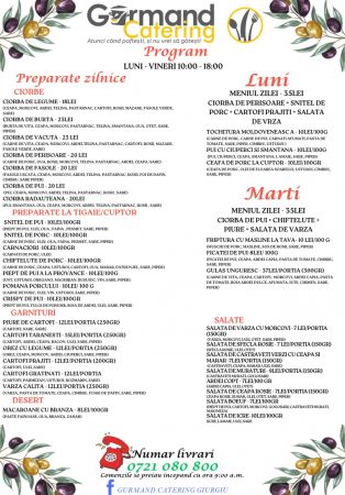 Te invităm să descoperi noul nostru meniu la Gurmand Catering, locul unde tradiția și gustul autentic se întâlnesc pentru a crea preparate delicioase, gătite cu pasiune și din ingrediente proaspete, exact ca acasă! Fie că ești în căutarea unui loc primitor unde să iei masa sau preferi să comanzi pentru livrare, noi suntem aici să îți oferim o experiență culinară de excepție.
