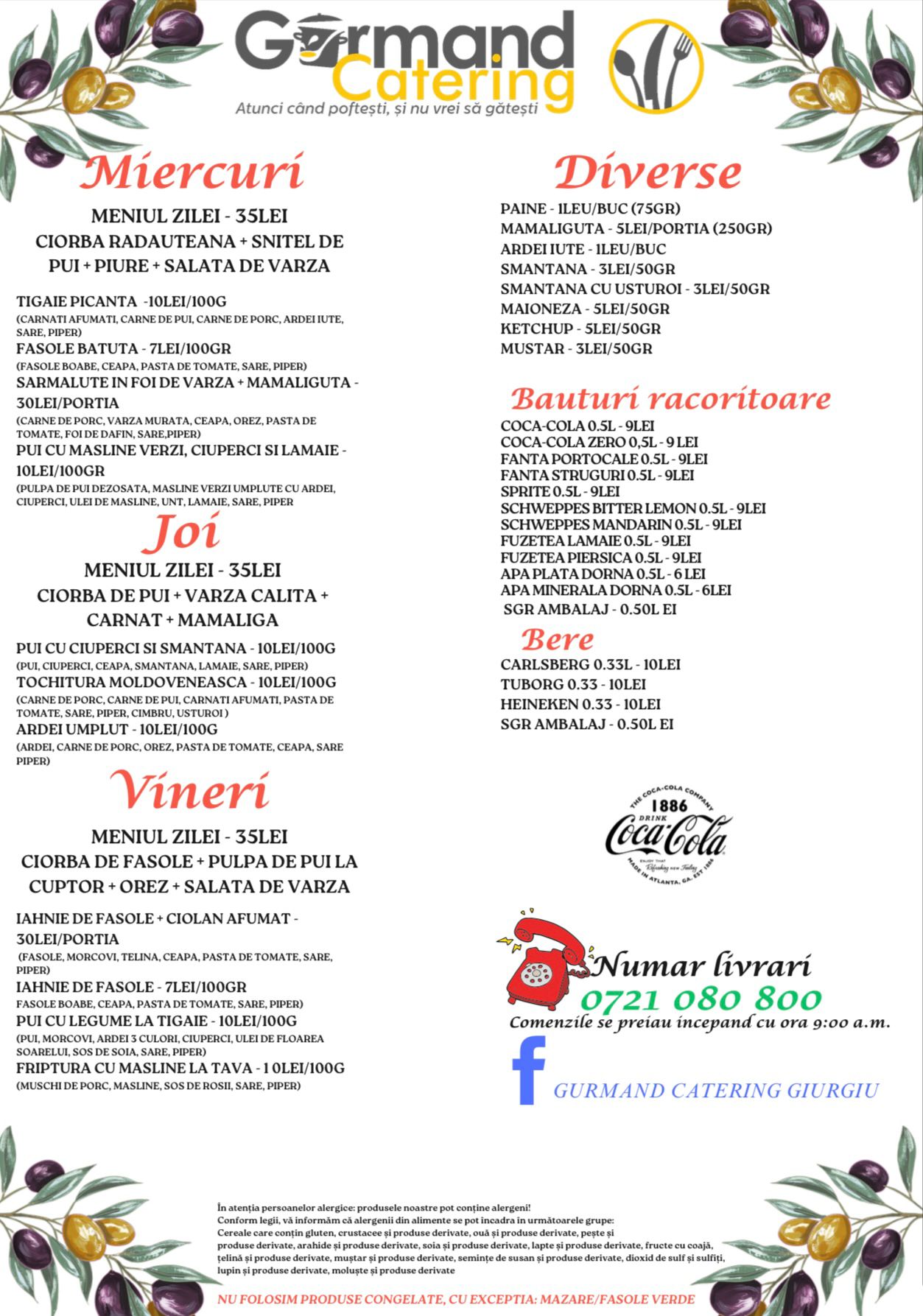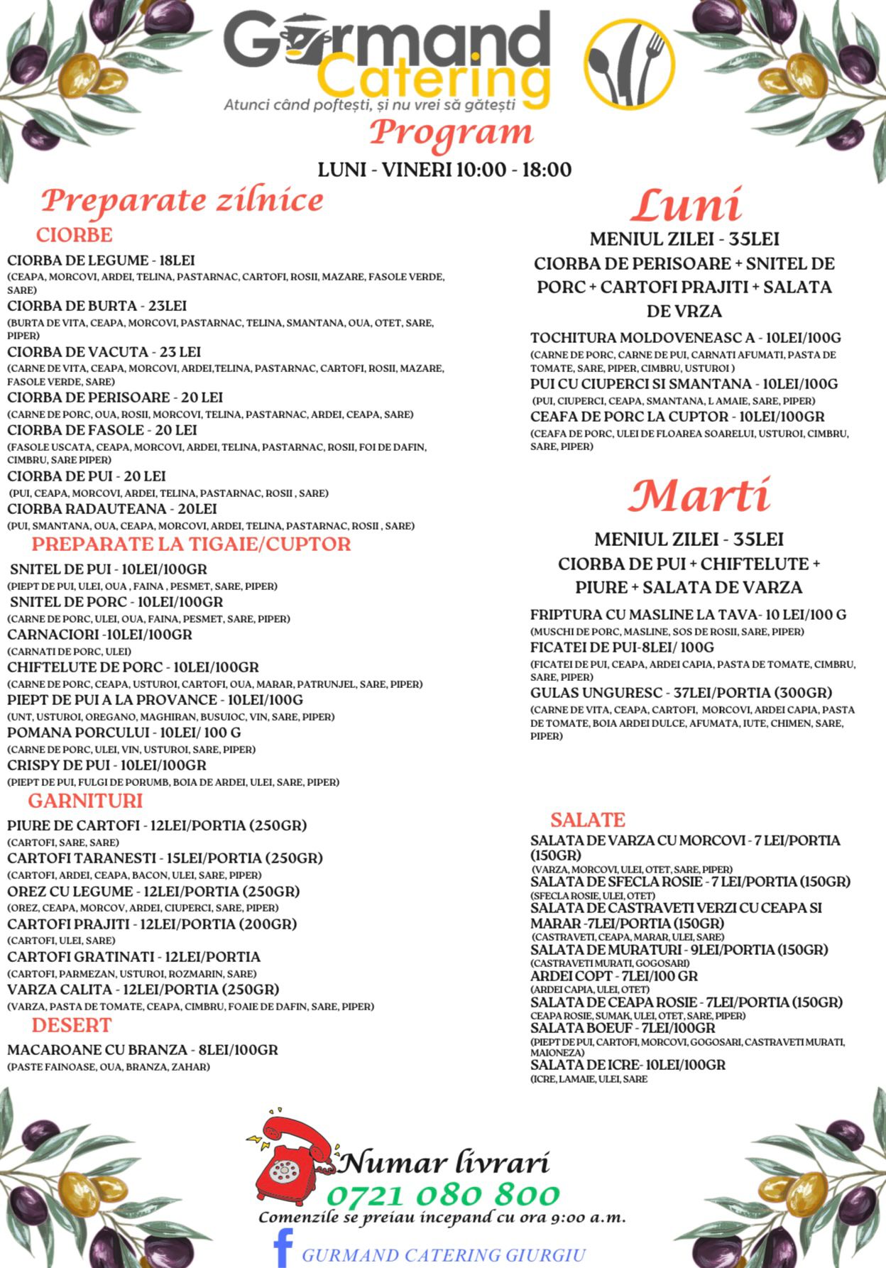 Te invităm să descoperi noul nostru meniu la Gurmand Catering, locul unde tradiția și gustul autentic se întâlnesc pentru a crea preparate delicioase, gătite cu pasiune și din ingrediente proaspete, exact ca acasă! Fie că ești în căutarea unui loc primitor unde să iei masa sau preferi să comanzi pentru livrare, noi suntem aici să îți oferim o experiență culinară de excepție.