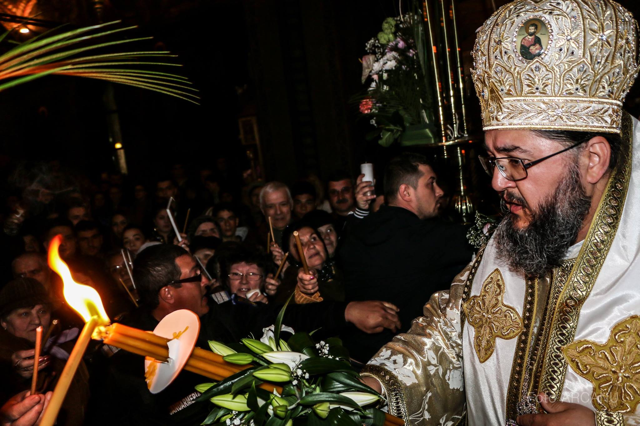 Totodată, Preasfinţia Sa i-a îndemnat pe numeroşii credincioşi prezenţi să facă din sufletele lor locaşuri binecuvântate de sălăşluire a lui Hristos şi de vrednică primire a darurilor Sale dumnezeieşti. Asemenea firii întregi, firea noastră clipă de clipă s-o înnoim din lumina Învierii, pentru că astăzi ,,Iisus Hristos din morţi ne-a născut pe noi din nou spre nădejde vie, spre moştenire nestricăcioasă şi neîntinată şi neveştejită (I Petru I, 3- 4). Aceeaşi sfântă bucurie legată de Învierea Domnului se prelungeşte în viaţa fiecărui om atunci când acesta mărturiseşte şi trăieşte, adânc şi conştient, taina morţii şi Învierii Mântuitorului.”