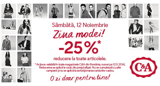 IMPORTANT! „Ziua Modei la C&A”, 25% reducere la toate articolele!