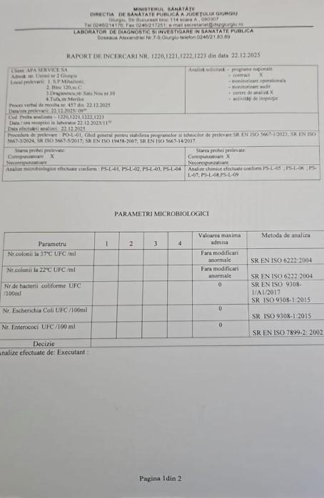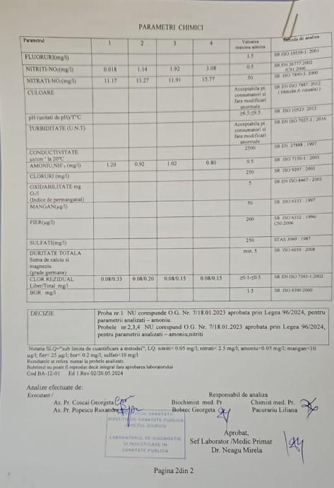 Pe acesta cale facem apel la folosirea apei DOAR IN SCOP MENAJER, depășirile înregistrate făcând improprie utilizarea apei pentru consumul uman.