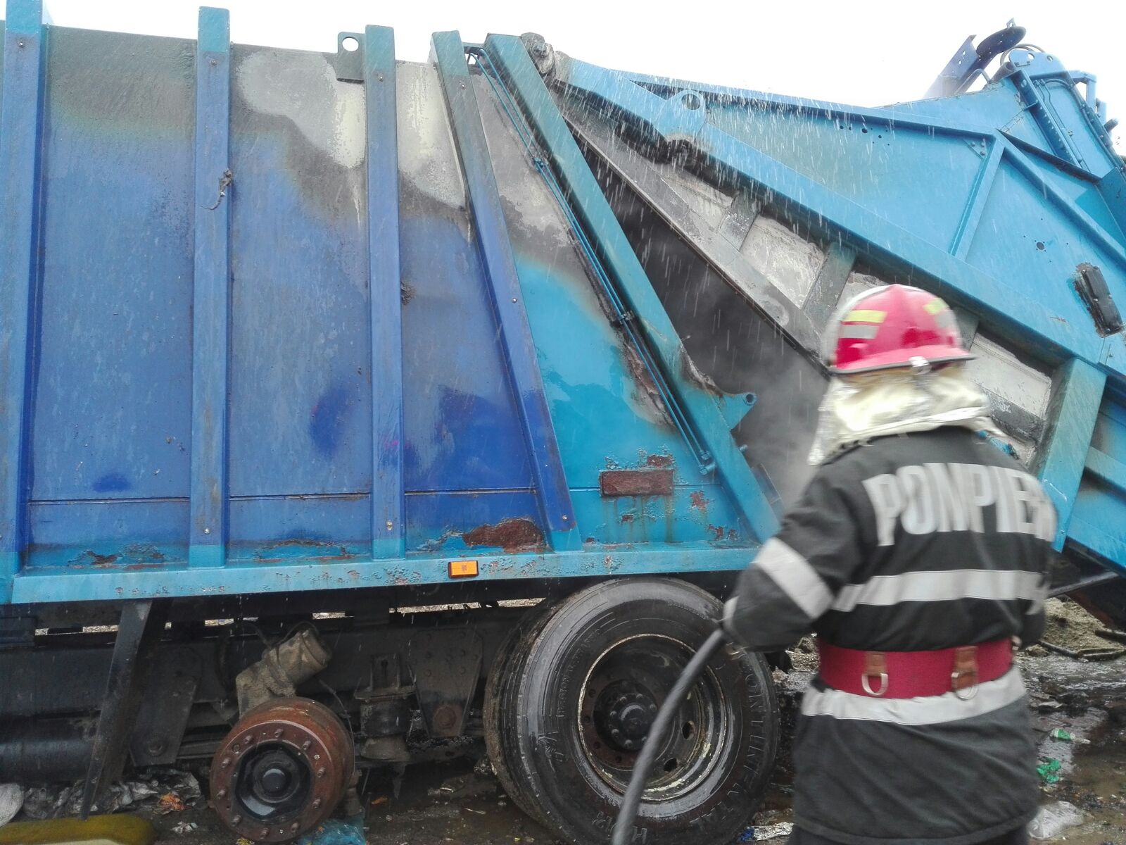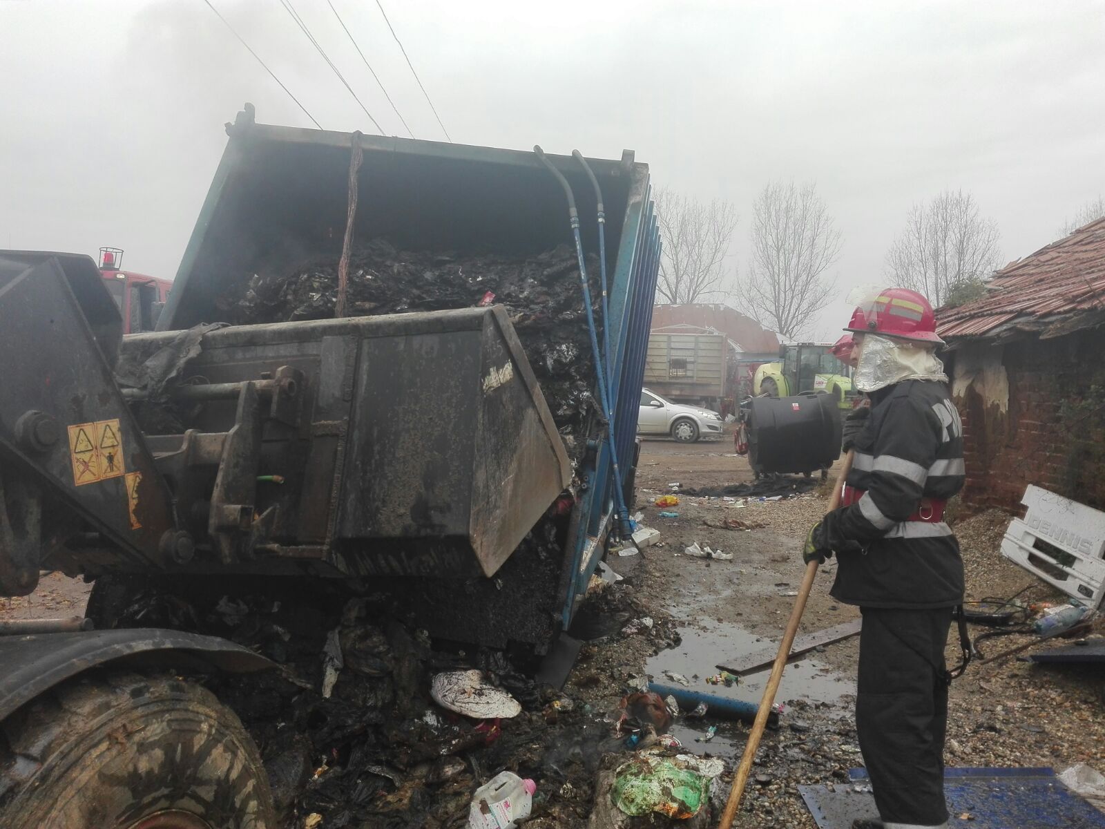 Incendiu… la o autospecială de transport gunoi menajer (FOTO)