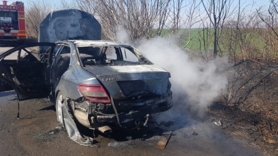 Incendiu la un autoturism, lichidat de pompierii giurgiuveni! (FOTO)