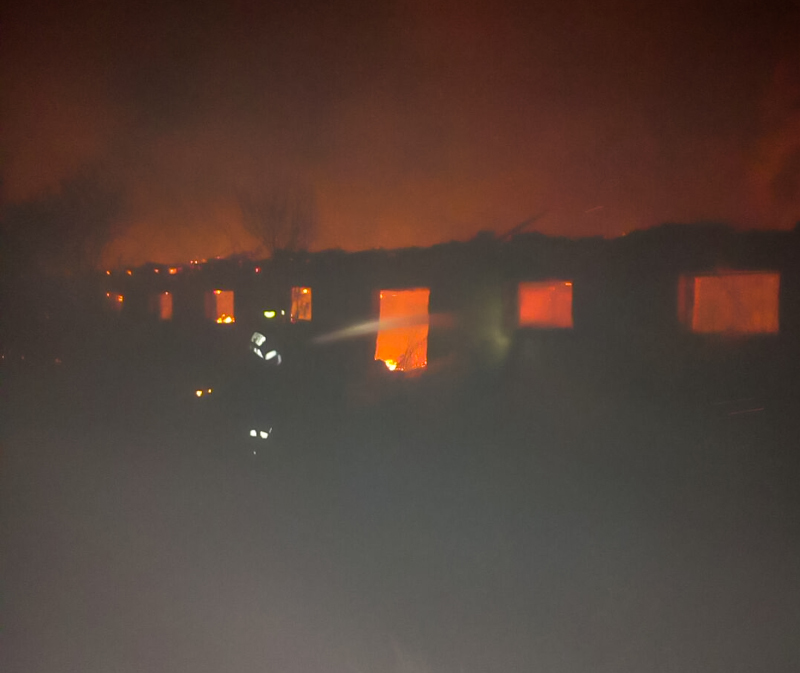 Incendiu la un fost CAP. Au ars zeci de baloţi şi lemnele depozitate în interior (FOTO)