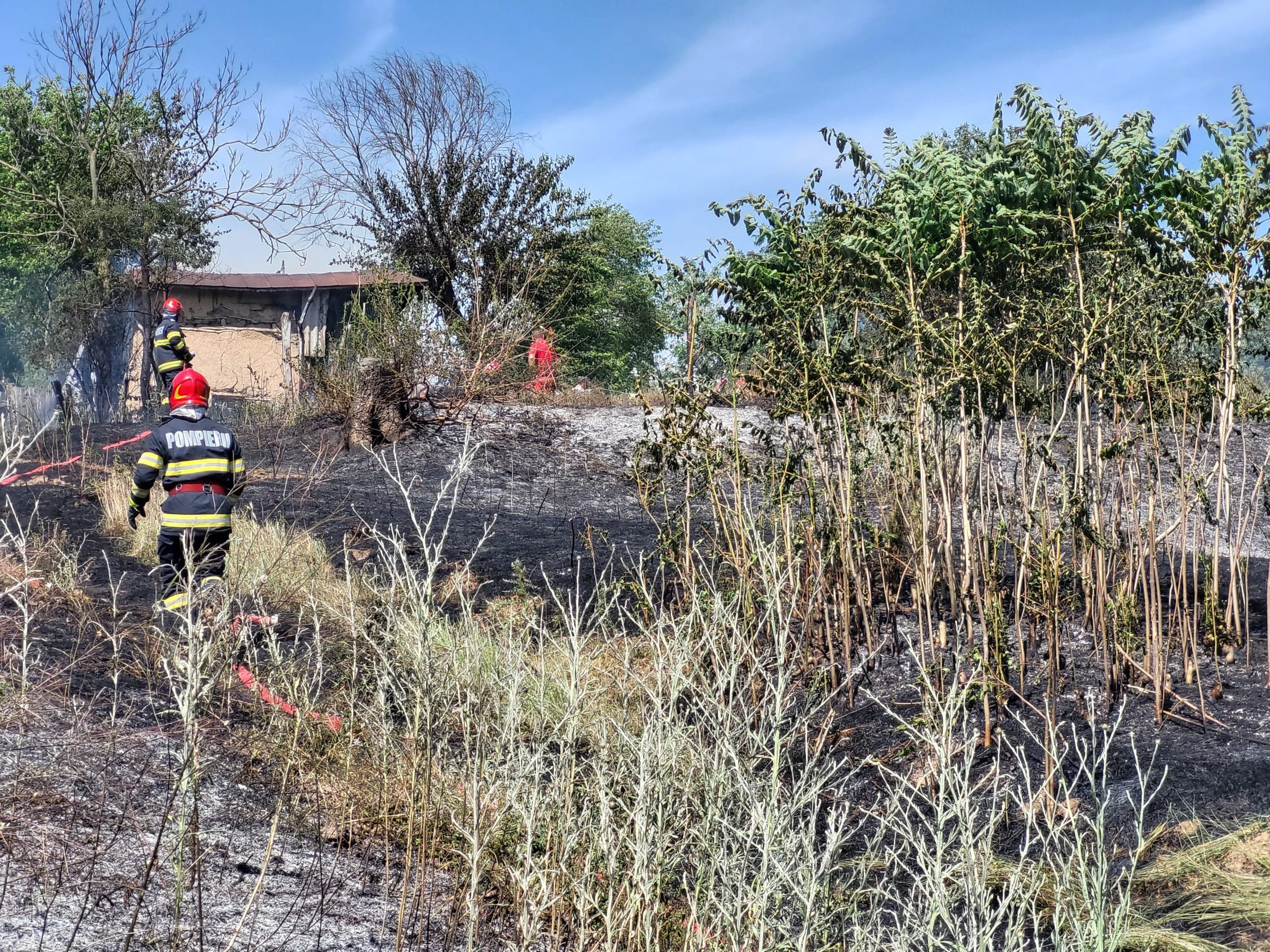 Pompierii au constatat faptul că locuința ardea, atât la nivelul acoperișului, cât și în interior. Imcendiul se manifesta și la vegetație uscată, în mai multe focare și în locuri greu accesibile.