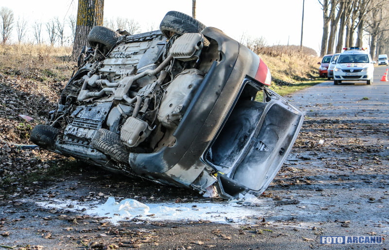 O tânără conducătoare auto a fost rănită într-un accident pe DJ 504. Potrivit informaţiilor oferite de Poliţie, şoferiţa, de 24 de ani, din Bucureşti, nu a adaptat viteza pe un carosabil umed, în încercarea de a evita lovirea unui câine, autoturismul Audi a părăsit partea carosabilă şi acroşat doi copaci de pe marginea drumului, răsturnându-se pe şosea.