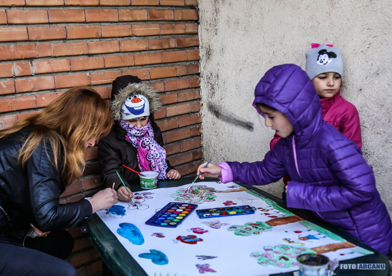 Altfel spus, cei doi reprezentanţi ai instituţiilor implicate, profesorul Anghel Ciobanu şi pictoriţa Petra Tănase Şerbănescu, au încercat să-i facă pe micuţii prezenţi părtaşi la procesul de creaţie în cadrul unui atelier stradal ad-hoc, în faţa Galeriei „Ioana d’ arte”, din zona Petrom de pe şoseaua Bucureşti.