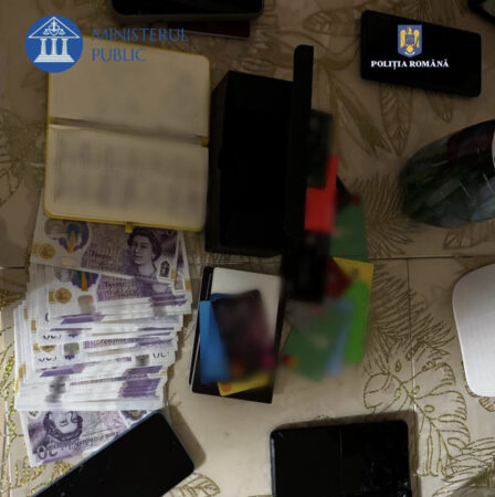 În urma perchezițiilor domiciliare efectuate, au fost descoperiți și ridicați 2.200 de lei, 1.760 de lire sterline, 13 telefoane mobile, 44 de carduri bancare emise de autoritățile financiare din Anglia, un pistol airsoft, precum și alte înscrisuri utile soluționării cauzei.