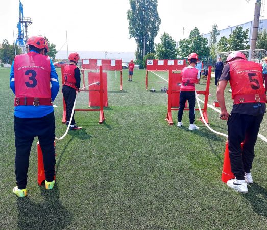 Echipajele, formate din câte nouă membri și o rezervă, au avut de trecut o probă teoretică, cu întrebări din domeniul prevenirii și stingerii incendiilor, o pistă cu obstacole și o ştafetă de 400 m, cu obstacole.