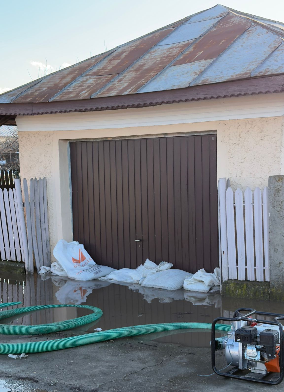 – Ghimpați apa a inundat patru curți, pe o suprafață de circa 12.000 mp și un beci.