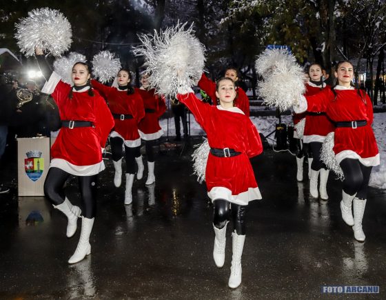 Luminţele au fost aprinse de Măriuca, cea mai mică participantă, aleasă dintre cei prezenţi, după un scurt moment artistic prezentat de majoretele şi orchestra de la Centrul Cultural „Ion Vinea”, din Giurgiu