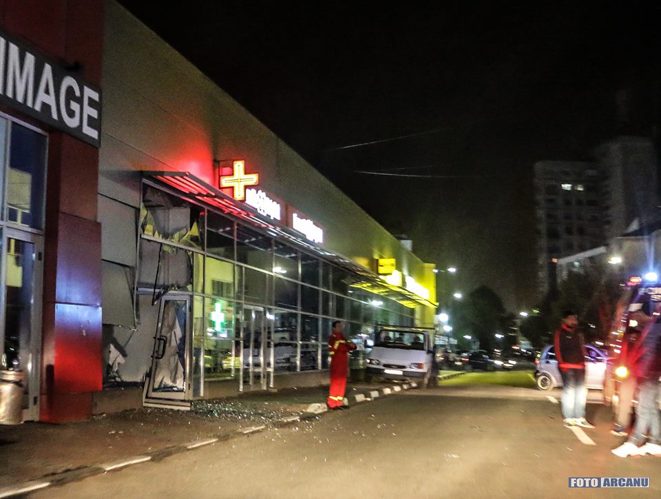 A intrat cu Loganul într-un spaţiu comercial de la Mega Image