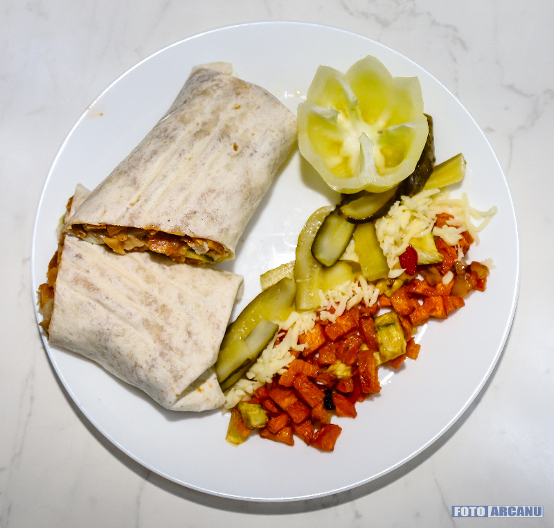 O lipie umplută cu carne de pui sau de vită, cartofi prăjiți, salată, ketchup și maioneză… şi altele, până la refuz. Altfel spus… „shaorma cu de toate”… pentru că este foarte bună şi pe gustul tău!