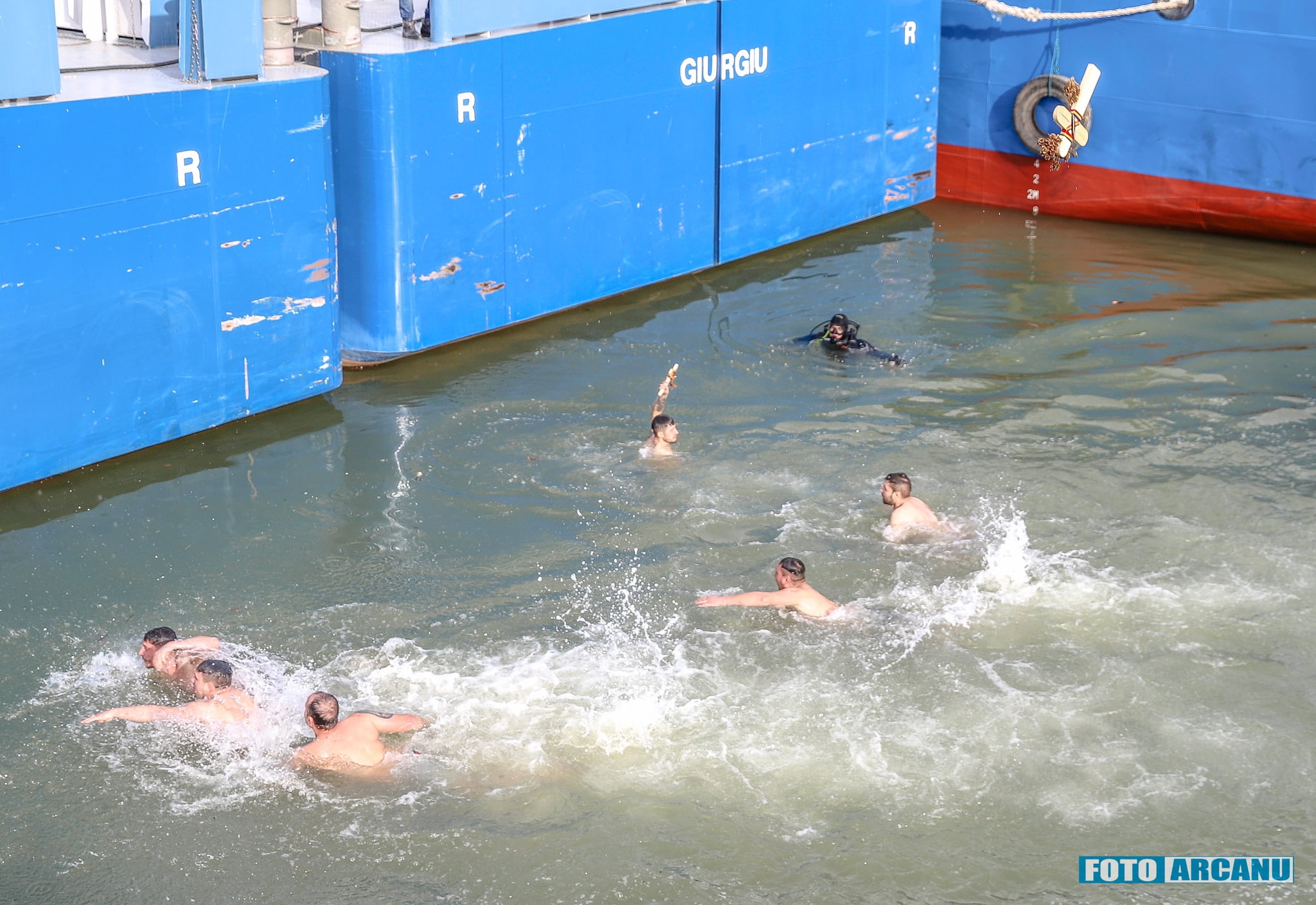 Aici, Preasfinţitul Părinte Ambrozie a oficita o slujbă, după care a fost demarat concursul tradițional, de recuperare a crucii, în care s-au înscris șase bărbaţi, respectiv: Ionuț Daniel Pieptea, Marius Antonescu, Marius Ionuţ Chiriță, Ionuț Ciucă, Marian Bogdan Oprea şi Victoraș Petrișor Cimpoeru.