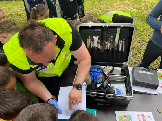 Polițiștii au organizat activitați interactive de ridicare/prelevare a amprentelor, procedee de încătușare, fiind totodată prezentate și autospecialele din dotare.