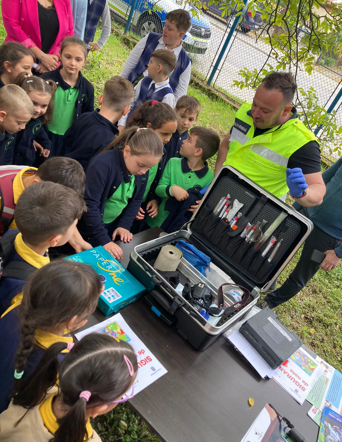 Polițiștii au organizat activitați interactive de ridicare/prelevare a amprentelor, procedee de încătușare, fiind totodată prezentate și autospecialele din dotare.