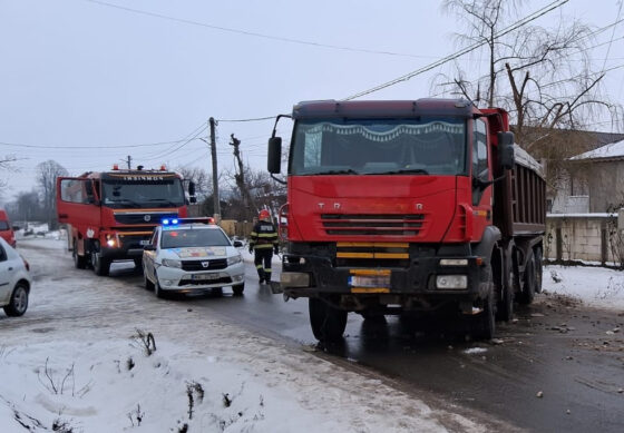 În eveniment au fost implicate o autobasculantă și un autoturism.