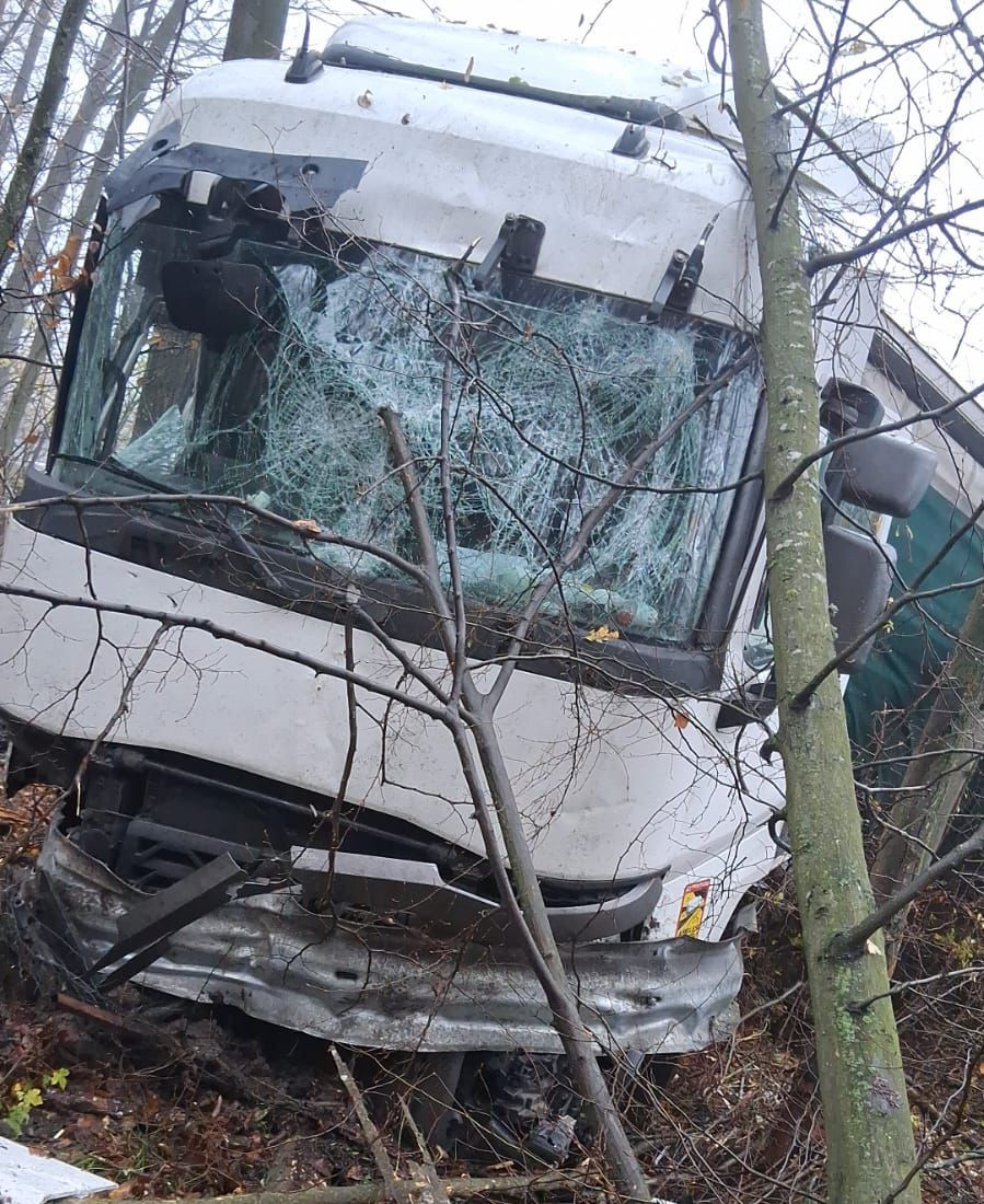 Potrivit informațiilor furnizate de autorități, un autotren care transporta colete a acroșat un autoturism și s-a răsturnat în afara părții carosabile, peste un alt autovehicul staționat pe banda de urgență, în care, din fericire, nu se afla nicio persoană.