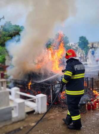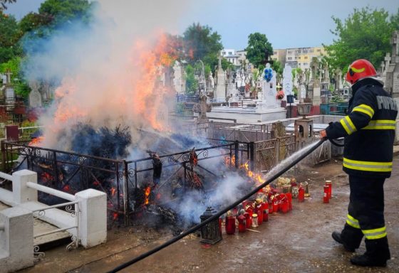 ISU Giurgiu. Astăzi, incendiu în Cimitirul „Sfântul Haralambie”, de pe şoseaua Sloboziei (FOTO)