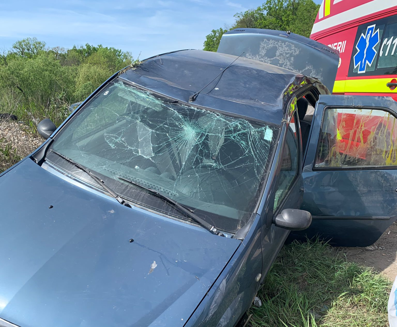 Aceștia au găsit autoturismul răsturnat pe marginea drumului. Din fericire, persoanele implicate nu au fost rănite.