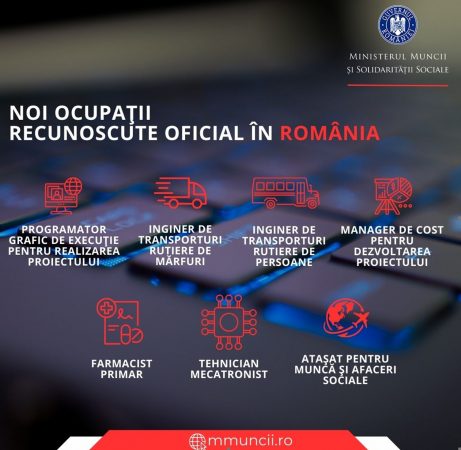 Șapte noi ocupații urmează să fie introduse în Clasificarea Ocupațiilor din România (COR) în baza ordinului comun semnat de ministrul Muncii și Solidarității Sociale, Simona Bucura-Oprescu, și de președintele Institutului Național de Statistică, Tudorel Andrei, în urma solicitărilor angajatorilor.