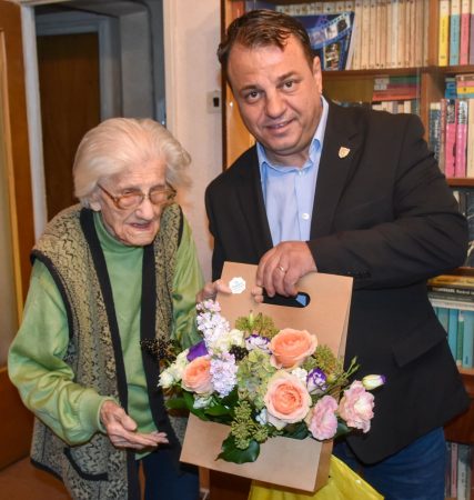 La împlinirea a 100 de ani, doamna Maria Garoafă a fost sărbătorită de Primăria Giurgiu