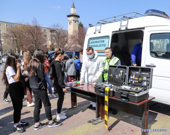 - prezentarea autolaboratorului criminalistic mobil destinat cercetării la fața locului, cu tehnica foto-video digitală, trusele specializate și echipamentele criminalistice necesare descoperirii tuturor tipurilor de categorii de urme existente în câmpul infracțional;