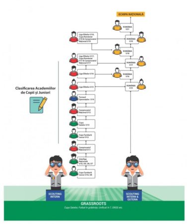 Putem observa pe schema CIRCUITUL PERFORMANȚEI legătura firească dintre competiția Liga Elitelor U19 și traiectoria celor mai merituoși jucători spre loturile naționale. Iar realitatea fundamentează deja proiecția!