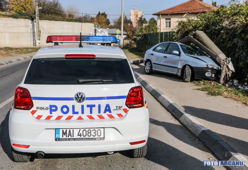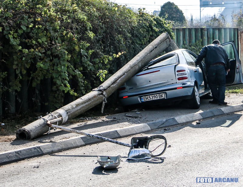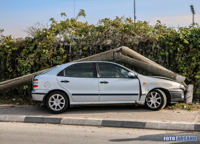 Un tânăr de 18 ani, din Giurgiu, aflat la volanul unui autoturism Fiat, înmatriculat în Bulgaria, nu a adaptat viteza în curbă, izbind în plin un stâlp de electricitate de pe marginea şoselei. În urma impactului violent, stâlpul s-a rupt și a căzut peste mașină.