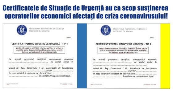 Certificatele de Situație de Urgență se acordă operatorilor economici a căror activitate este afectată de pandemia SARS-CoV-2.