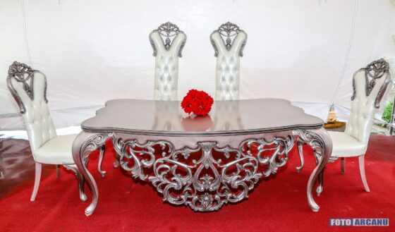 - Mobilier complet: mese, scaune, huse, fețe de masă