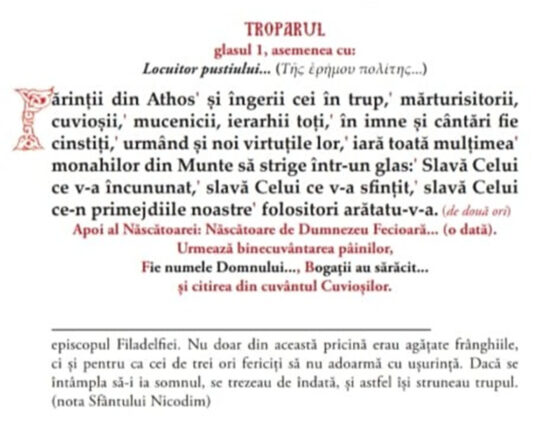 Acest troparul al Sfinților Părinți din Sfântul Munte Athos se cântă în fiecare duminică la Sfânta Liturghie.