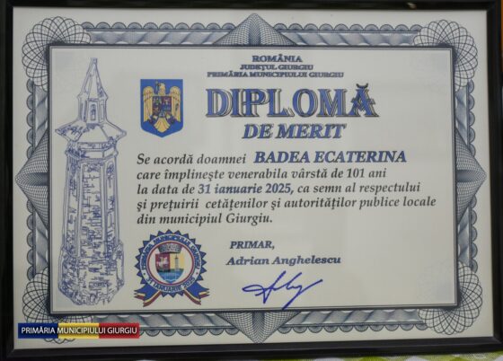 Ziua de 31 ianuarie 2025 a fost una specială pentru comunitatea giurgiuveană, odată cu aniversarea impresionantă a doamnei Ecaterina Badea, care a împlinit venerabila vârstă de 101 ani. Cu această ocazie, viceprimarul municipiului Giurgiu, Ionel Muscalu, i-a oferit un omagiu binemeritat, în semn de recunoaștere pentru viața trăită cu demnitate și înțelepciune.