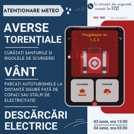 Județul Giurgiu se va afla sub o atenționare meteorologică de instabilitate atmosferică temporar accentuată, Continue reading