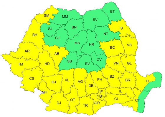 ATENȚIONARE METEOROLOGICĂ: COD GALBEN pentru judeţul GIURGIU