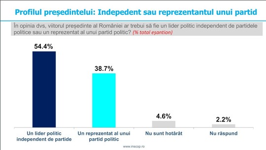 Mai mult de jumătate dintre români își doresc un președinte independent