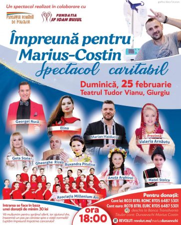 Teatrul „Tudor Vianu”: CONCERT CARITABIL ”ÎMPREUNĂ PENTRU MARIUS-COSTIN”